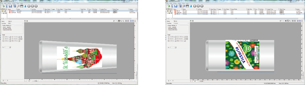 将同一文字、 图形或图像等内容打印至不同直径的圆柱体时, “墨点平衡转换算法” 确保打印内容的分辨率一致, 呈现相同的视觉效果。尤其适用于打印不同尺寸、 同一款式、 同一花色的套装圆瓶/ 杯子等。